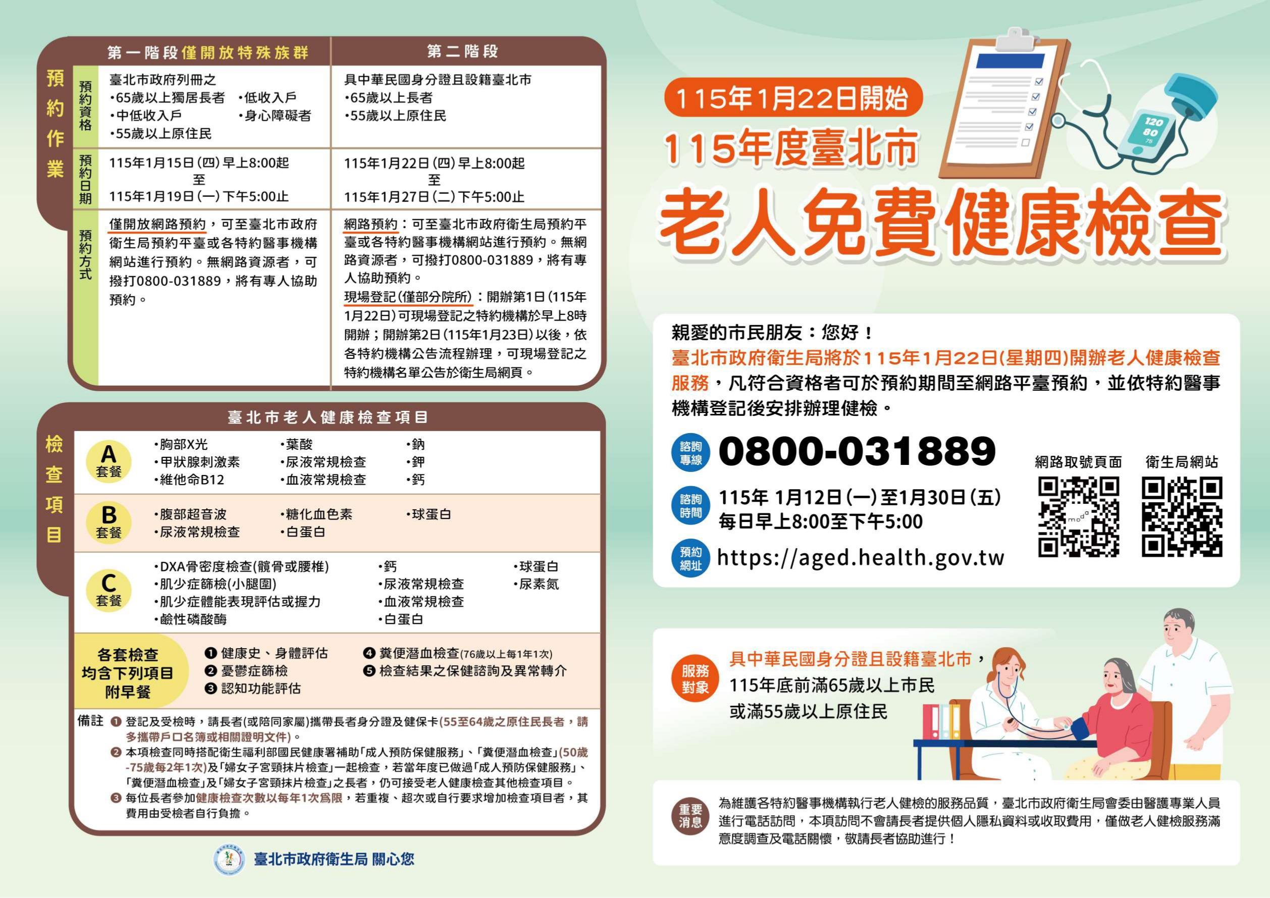 115年度老人健康檢查服務將於115年1月22日開辦